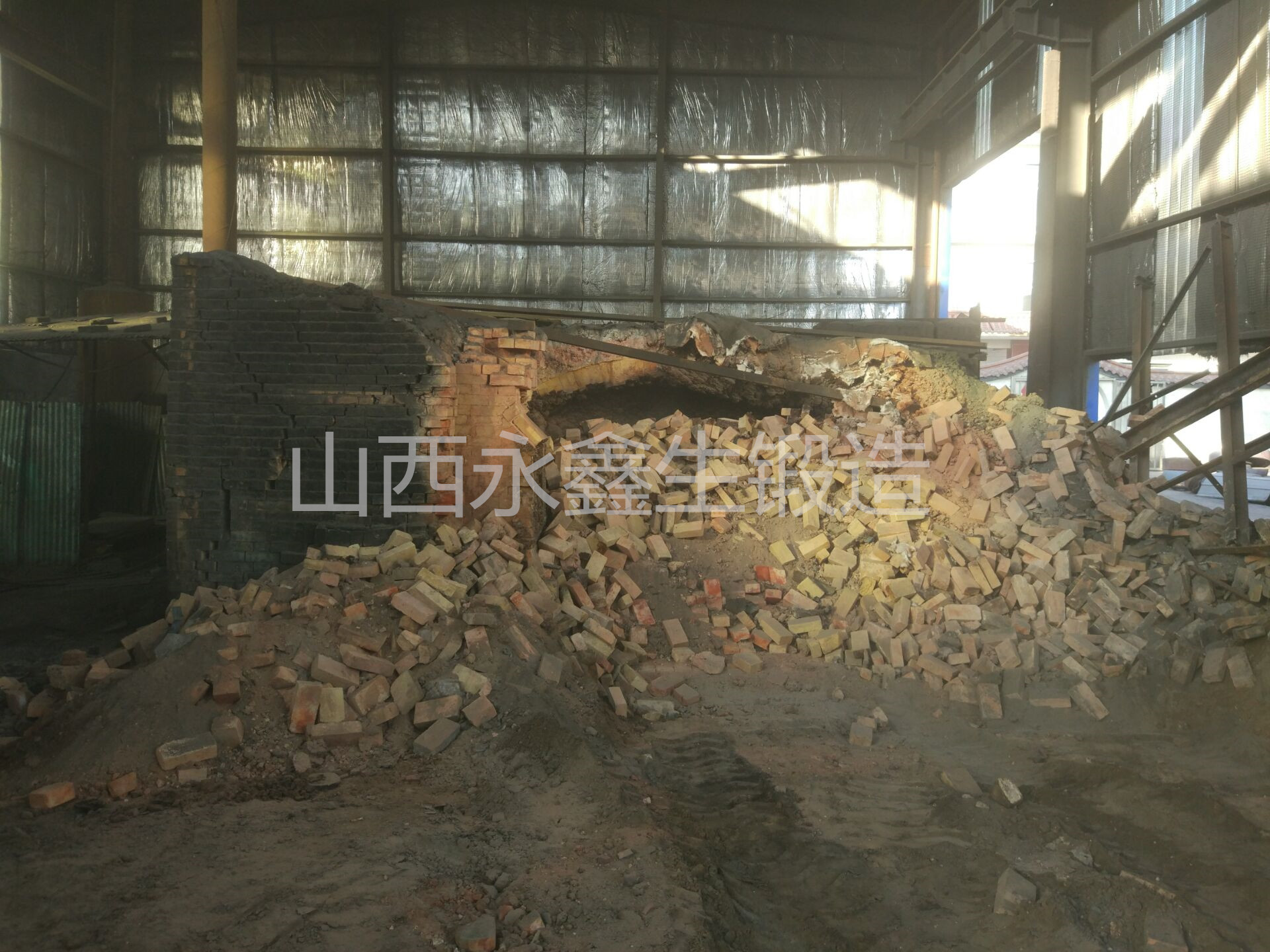 鍛造廠燃煤爐倒了
